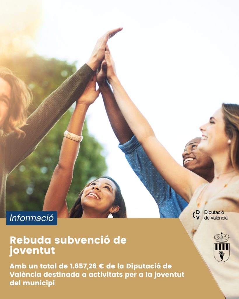 L’Ajuntament d’El Ràfol de Salem ha rebut una subvenció de 1.657,26 €, concedida per la Diputació de València, destinada al desenvolupament d’activitats dirigides a la joventut del municipi.