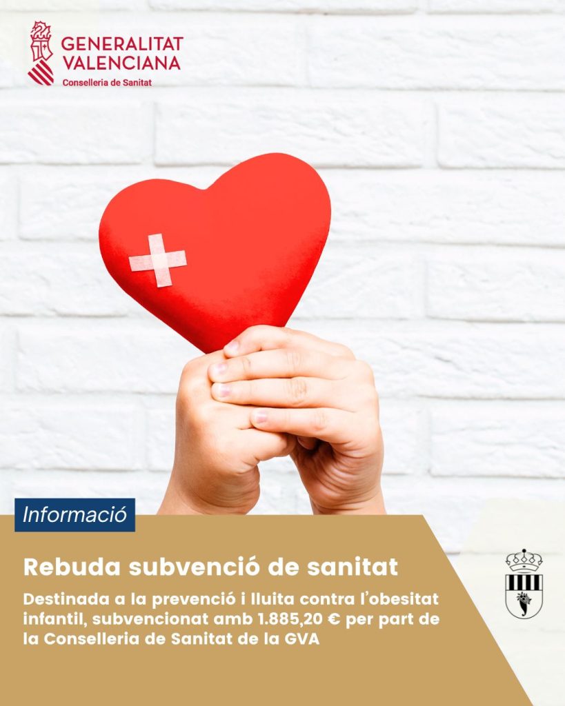 L’Ajuntament d’El Ràfol de Salem ha rebut una subvenció per import de 1.885,20 € concedida per la Conselleria de Sanitat de la Generalitat Valenciana, destinada a dur a terme accions per a la prevenció i lluita contra l’obesitat infantil.